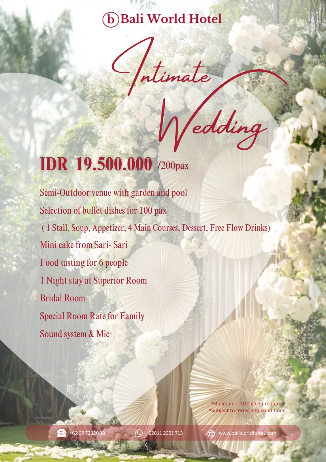 Planning a wedding doesn't always have to mean grandeur. For many couples, the magic lies in closeness, celebrating love surrounded only by the people who matter most. At Bali World Hotel, intimacy isn’t about size, it’s about sincerity. And your love story deserves a place where it can shine quietly, beautifully, and genuinely.