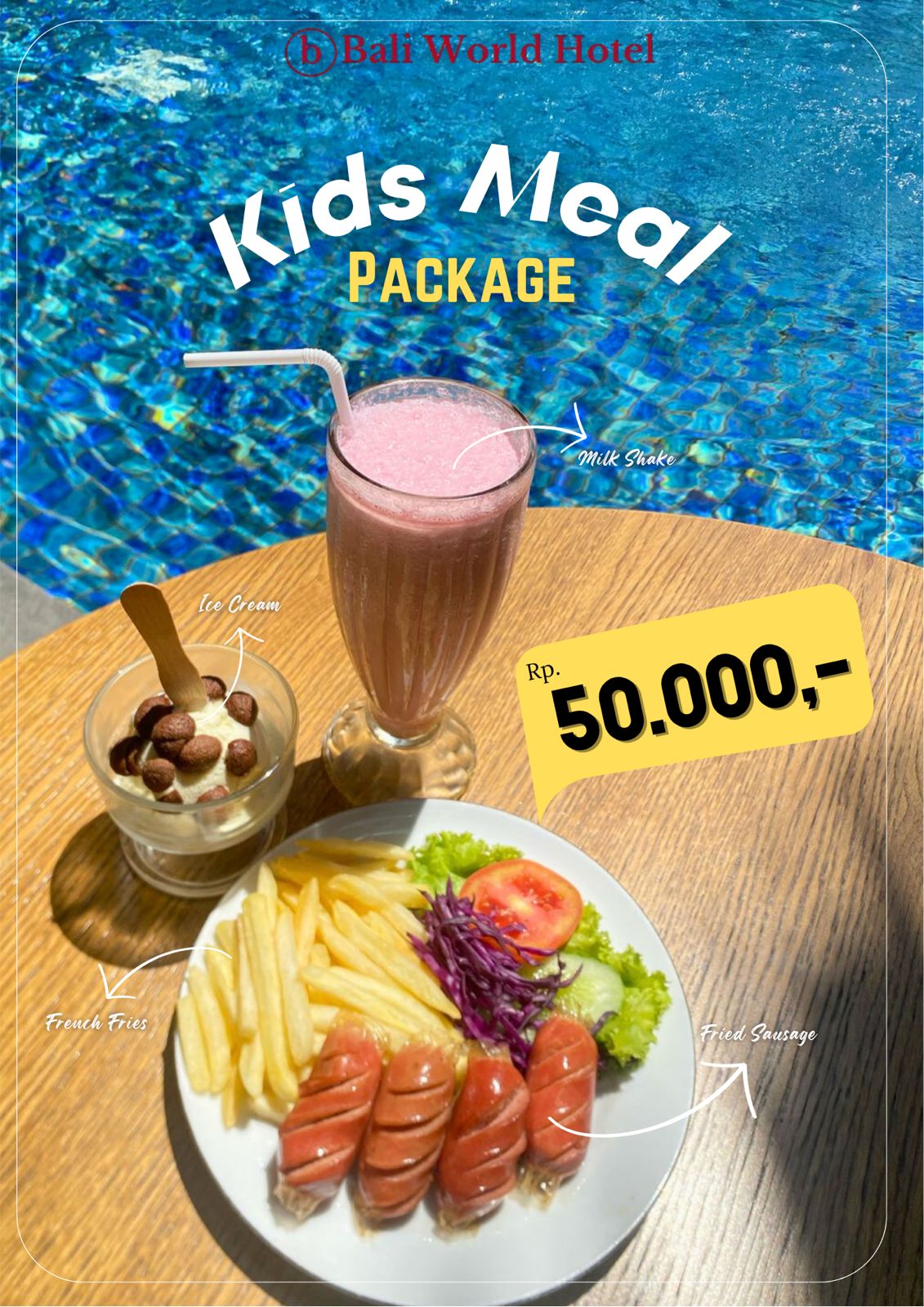 Treat your little ones to a delightful meal at Bali World Hotel! The specially designed Kids’ Meal is the ultimate combination of flavor and fun. Enjoy crispy fries paired with savory sausages, and let your kids choose between a refreshing milkshake or a classic Milo. To top it all off, a sweet ice cream dessert makes this meal a hit every time.