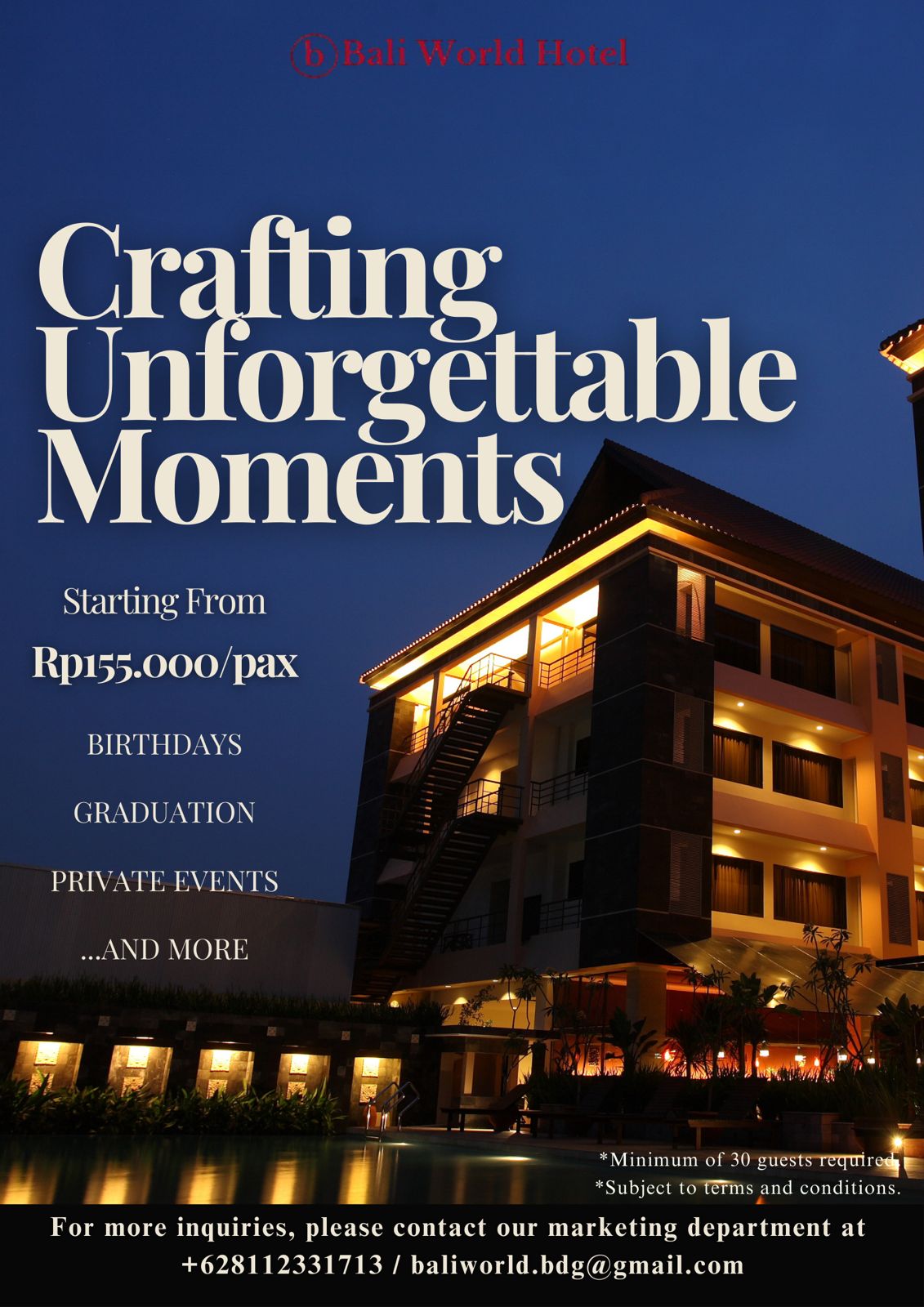 But it’s not just the space that makes Bali World Hotel so special. It’s the meticulous attention to detail. Every event is tailored to meet your needs, whether it’s a customized seating arrangement, a handpicked buffet menu featuring the finest local flavors, or seamless technology support. The hotel’s team of experts works closely with you, ensuring your celebration feels effortless, meaningful, and, above all, unforgettable.