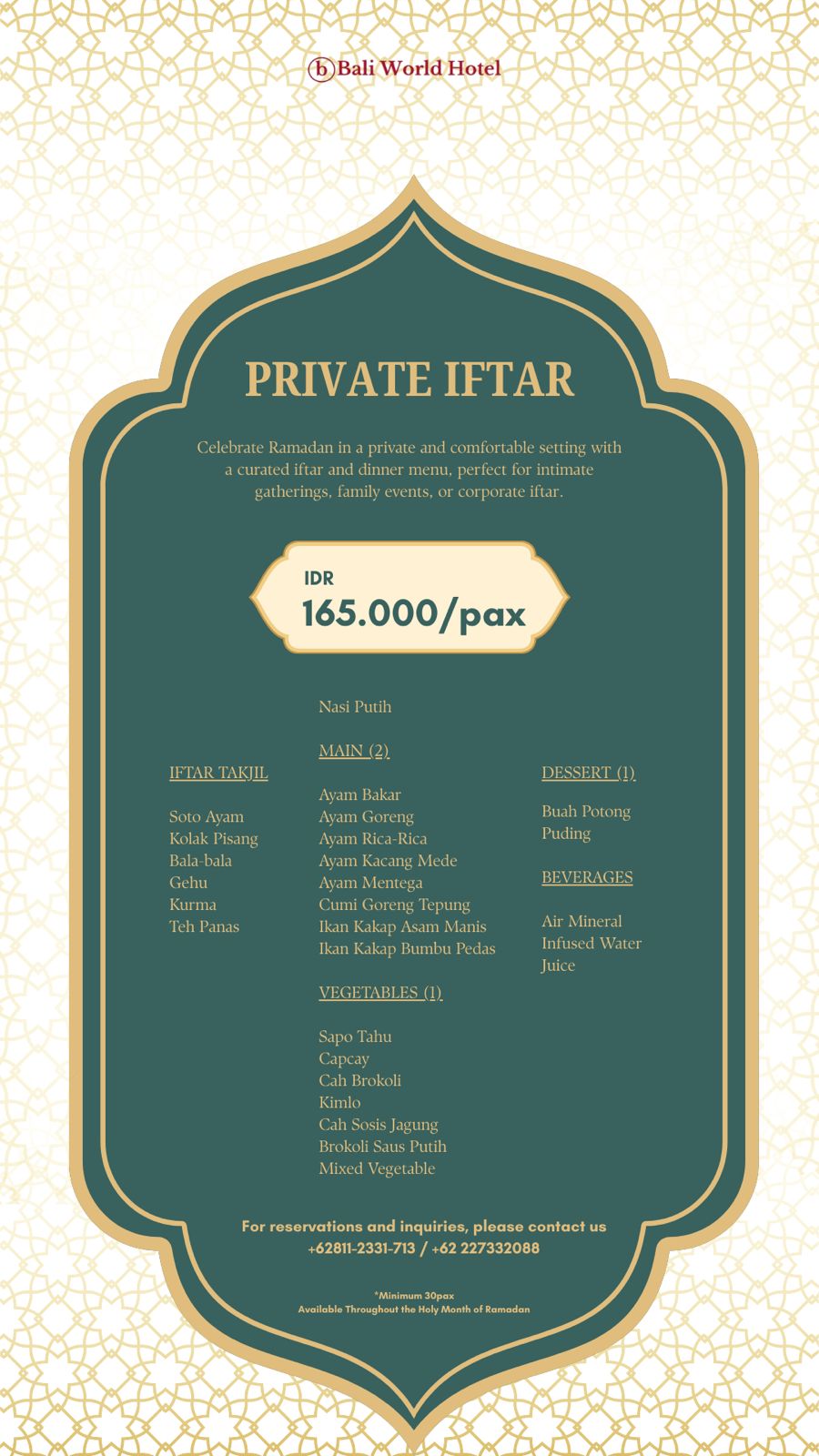 Whether for corporate gatherings or private groups, Bali World Hotel offers a peaceful Ramadan setting, attentive service, and heartfelt hospitality.